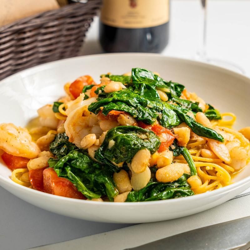 Shrimp & Clams served with a spicy garlic marinara sauce